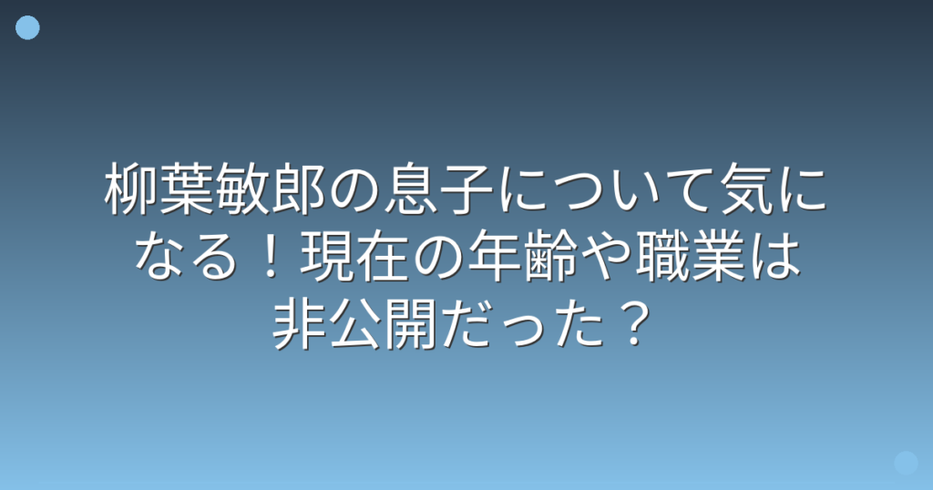 柳葉敏郎の息子について気になる!現在の年齢や職業は非公開だった?