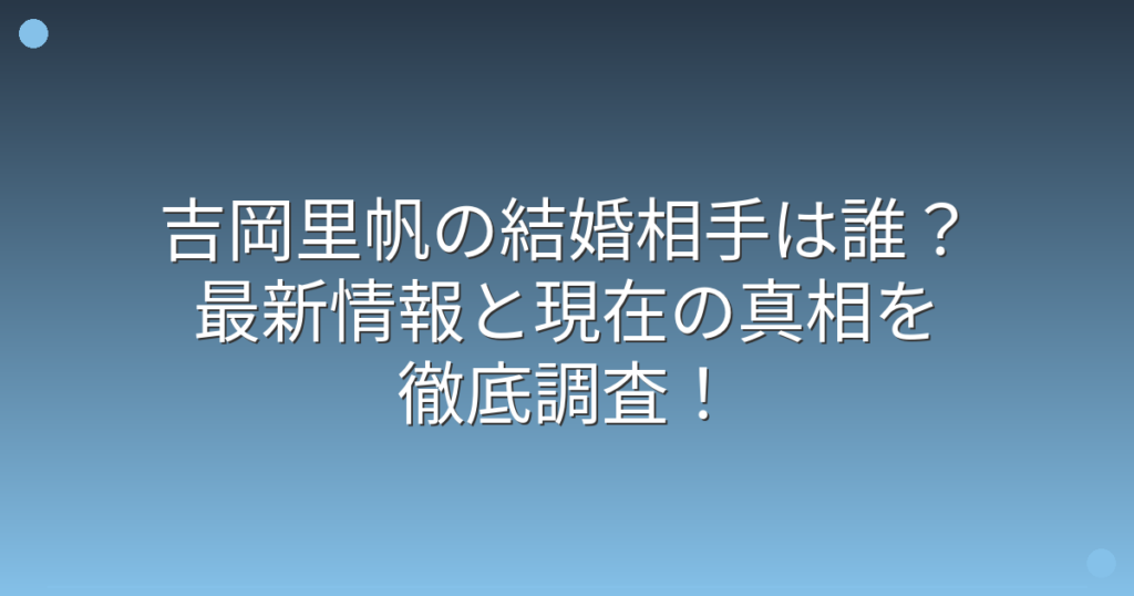 吉岡里帆の結婚相手は誰?最新情報と現在の真相を徹底調査!