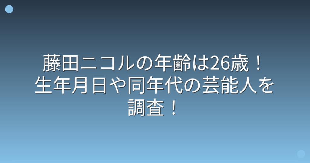 藤田ニコルの年齢は26歳!生年月日や同年代の芸能人を調査!