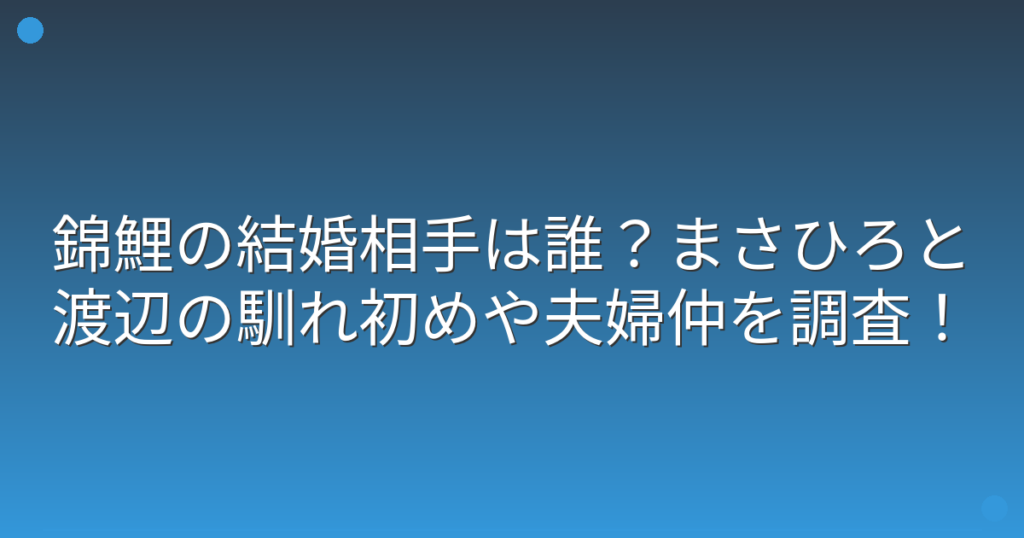 錦鯉の結婚相手は誰?まさひろと渡辺の馴れ初めや夫婦仲を調査!