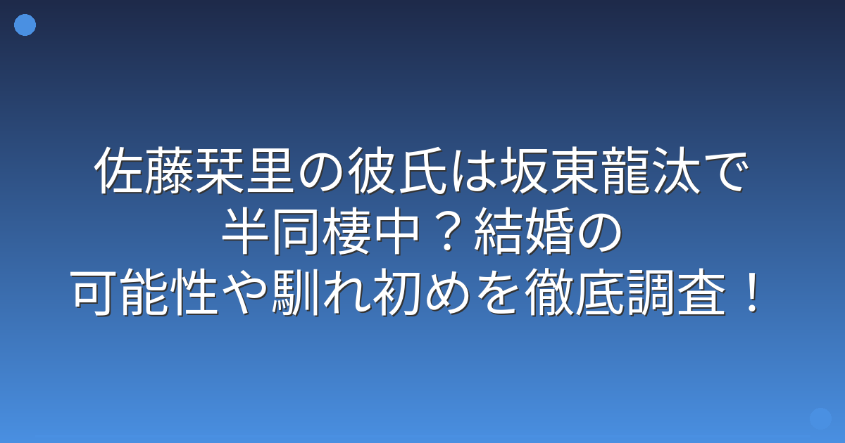 今回は、佐藤栞里さんの彼氏である坂東龍汰さんとの半同棲報道や、結婚の可能性についてお伝えしてきました。