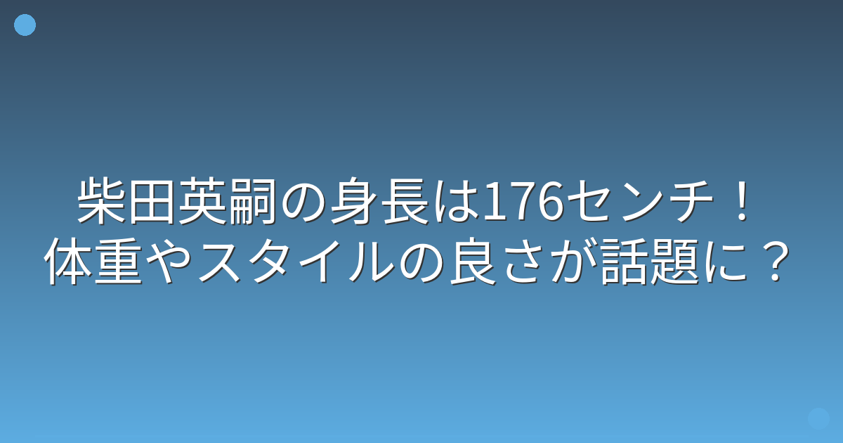 柴田英嗣さんの176センチという身長は、俳優活動において大きなアドバンテージとなっているようです。