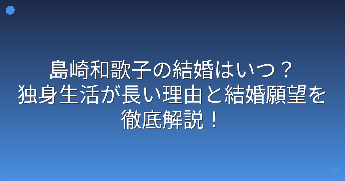 芸能界を代表する実力派タレントとして活躍する島崎和歌子さんの結婚について、多くの方が気になっているようですね。