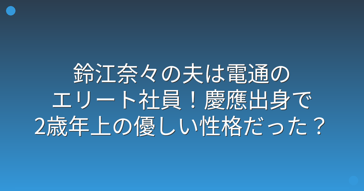 鈴江さんの夫は電通のエリート社員で、慶應義塾大学出身という華麗な経歴を持ち、鈴江さんより2歳年上の優しい性格の持ち主であることが分かりました。