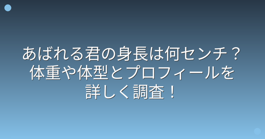 お笑い芸人として活躍するあばれる君の身長が気になっている方も多いのではないでしょうか。 テレビで見かける機会も多く、独特のキャラクターで人気を集めているあばれる君ですが、実際の身長や体型について知りたいという声が多く寄せられています。 そ...
