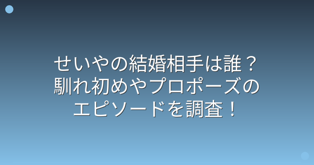 お笑いコンビ・霜降り明星のせいやさんの結婚について、ファンの間で大きな注目が集まっていますね。 相方の粗品さんとともに人気を博しているせいやさんですが、プライベートな結婚事情についても気になるところです。 そこで今回は、せいやさんの結婚相...