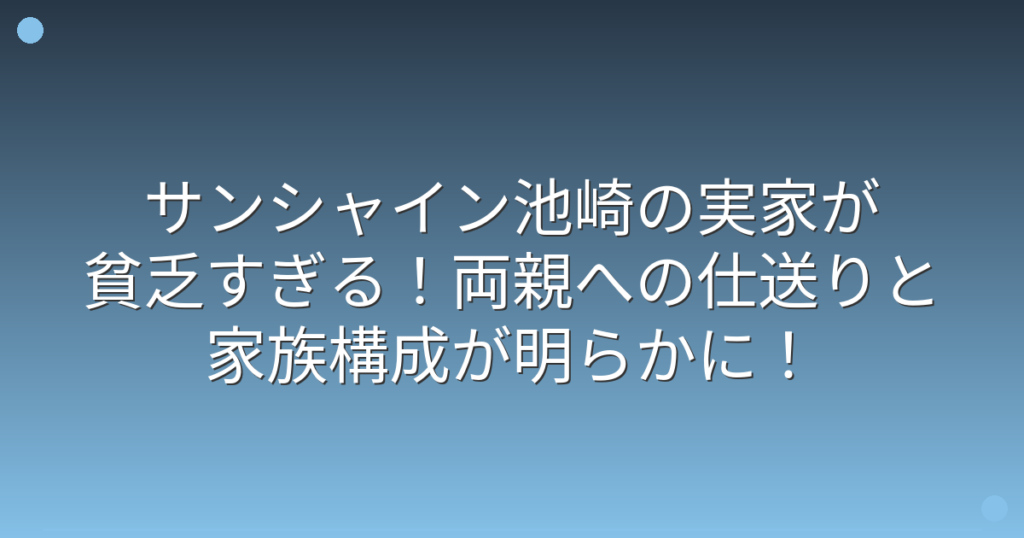 サンシャイン池崎の実家が貧乏すぎる!両親への仕送りと家族構成が明らかに!
