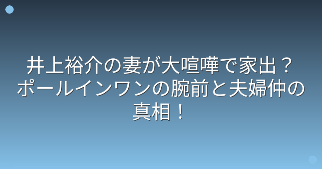 井上裕介の妻が大喧嘩で家出?ポールインワンの腕前と夫婦仲の真相!