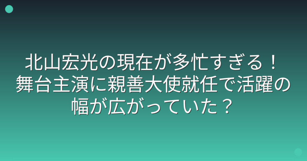 北山宏光の現在が多忙すぎる!舞台主演に親善大使就任で活躍の幅が広がっていた?