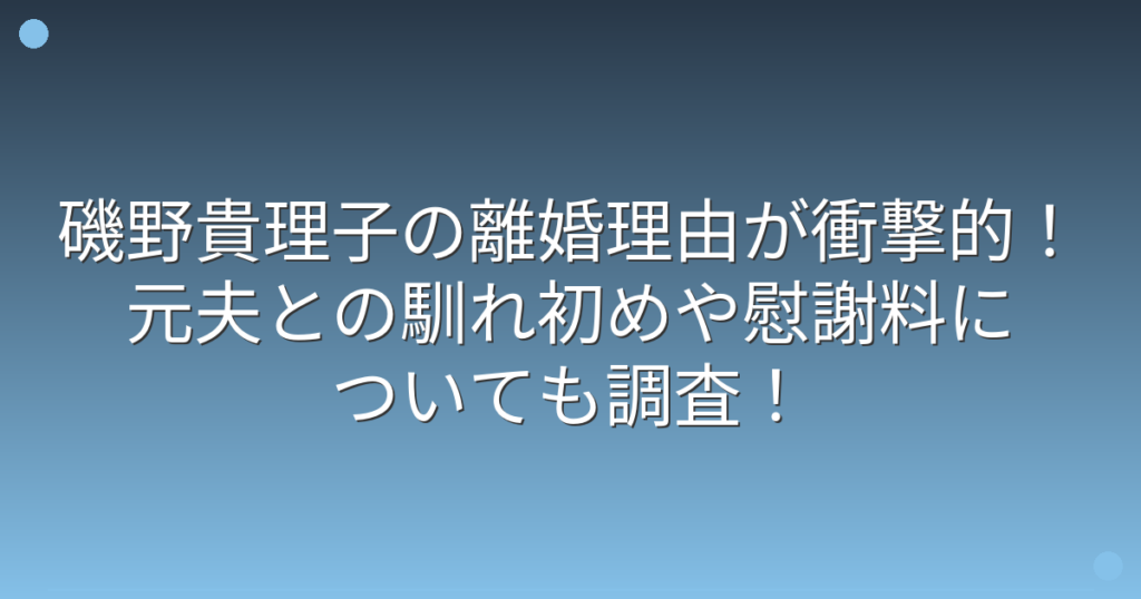 磯野貴理子の離婚理由が衝撃的!元夫との馴れ初めや慰謝料についても調査!