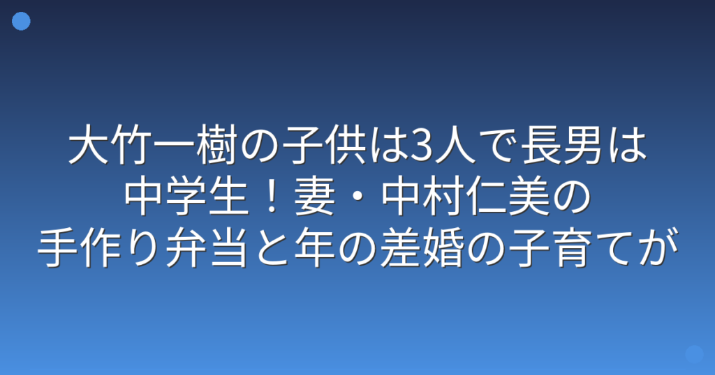 大竹一樹の子供は3人で長男は中学生!妻・中村仁美の手作り弁当と年の差婚の子育てが話題に!
