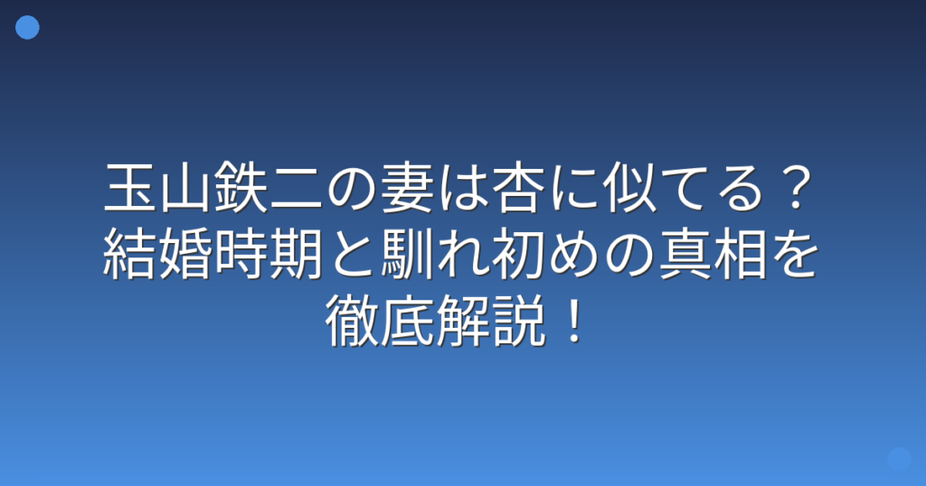 玉山鉄二の妻は杏に似てる?結婚時期と馴れ初めの真相を徹底解説!