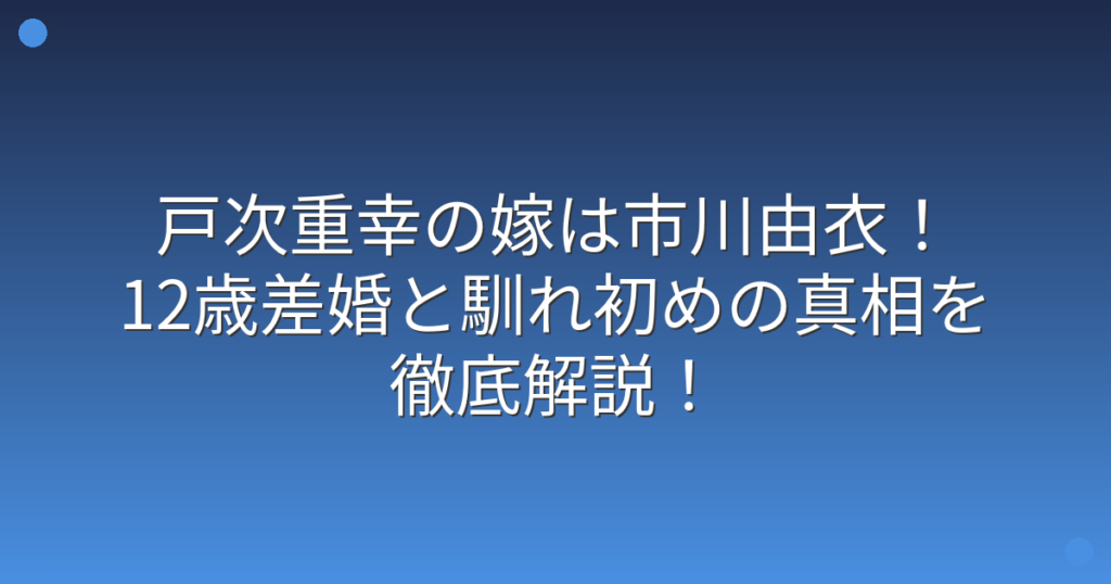 戸次重幸の嫁は市川由衣!12歳差婚と馴れ初めの真相を徹底解説!