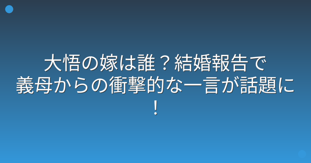 大悟の嫁は誰?結婚報告で義母からの衝撃的な一言が話題に!