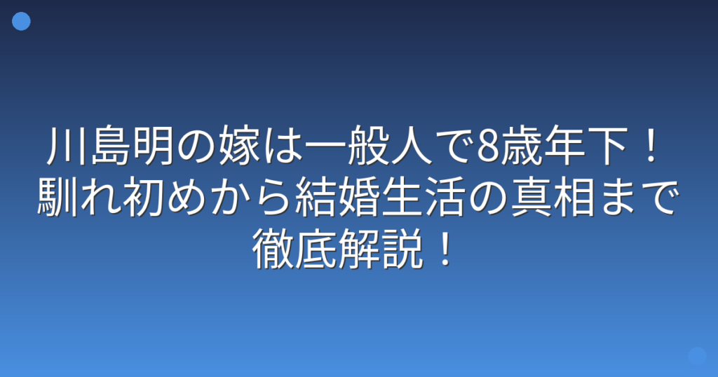 川島明の嫁は一般人で8歳年下!馴れ初めから結婚生活の真相まで徹底解説!
