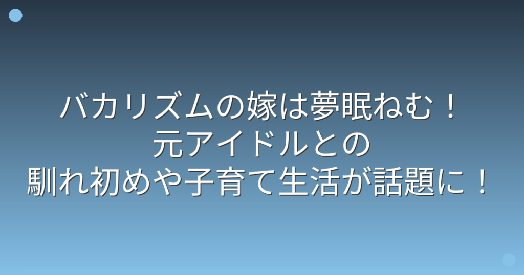 お笑い芸人として活躍するバカリズムさんの結婚が話題になっていますね。 バカリズムさんの嫁は元アイドルの夢眠ねむさんで、2019年に結婚を発表してから家庭生活も順調に歩んでいるようです。 そこで今回は、バカリズムさんの嫁である夢眠ねむさんとの馴... -