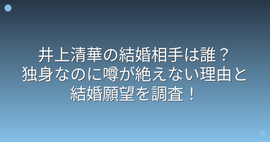 井上清華の結婚相手は誰?独身なのに噂が絶えない理由と結婚願望を調査!