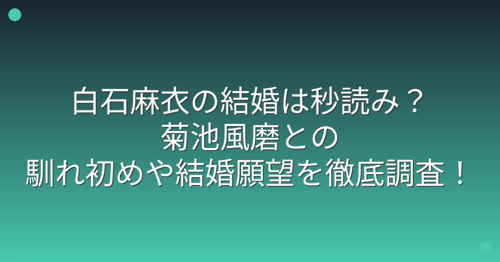 元乃木坂46のエース・白石麻衣さんの結婚が話題になっていますね。 2024年3月から菊池風磨さんとの真剣交際が報じられ、2025年には「結婚秒読み」という声も広がっています。 乃木坂46の1期生メンバーの結婚ラッシュも相まって、白石麻衣さんの結婚に注目... -