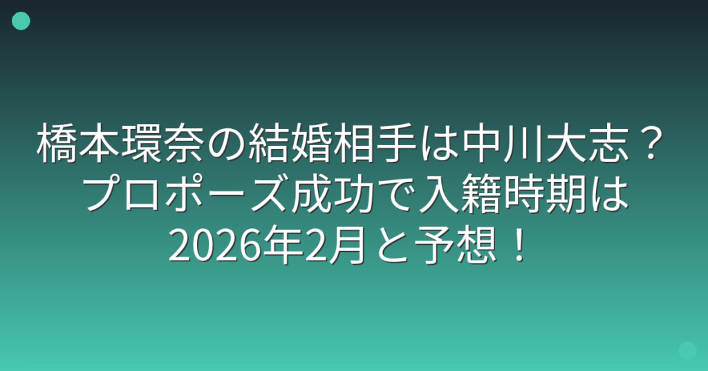 橋本環奈の結婚相手は中川大志?プロポーズ成功で入籍時期は2026年2月と予想!