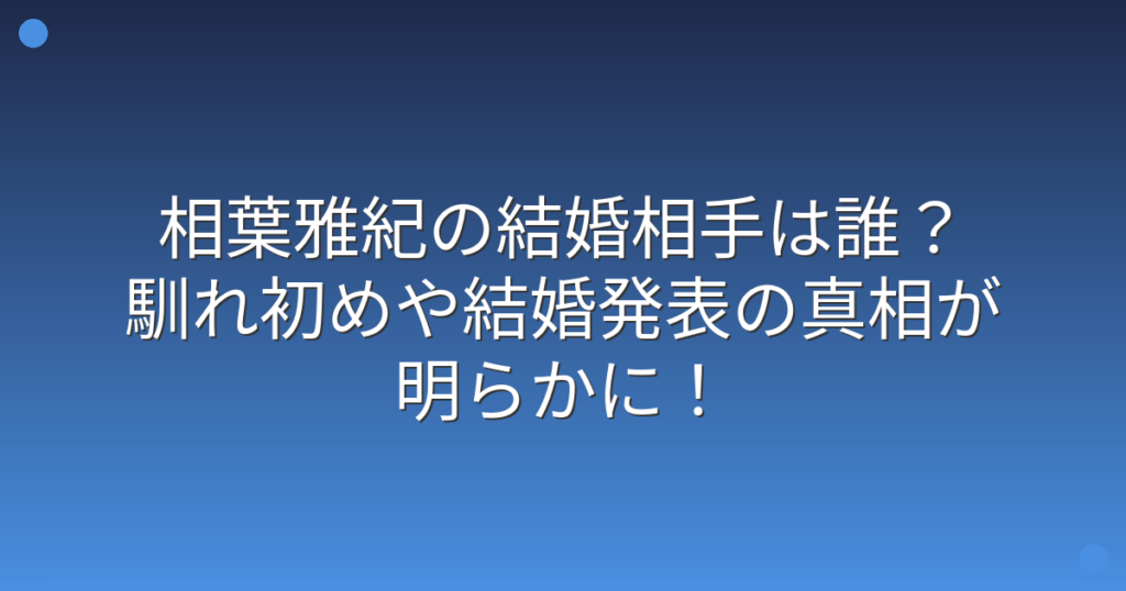 嵐のメンバーである相葉雅紀さんの結婚が、2023年に大きな話題となりましたね。 国民的アイドルグループの一員として長年活躍してきた相葉さんの結婚は、多くのファンにとって嬉しいニュースとなりました。 そこで今回は、相葉雅紀さんの結婚相手や馴れ初... -
