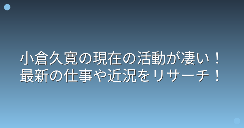 小倉久寛の現在の活動が凄い!最新の仕事や近況をリサーチ!