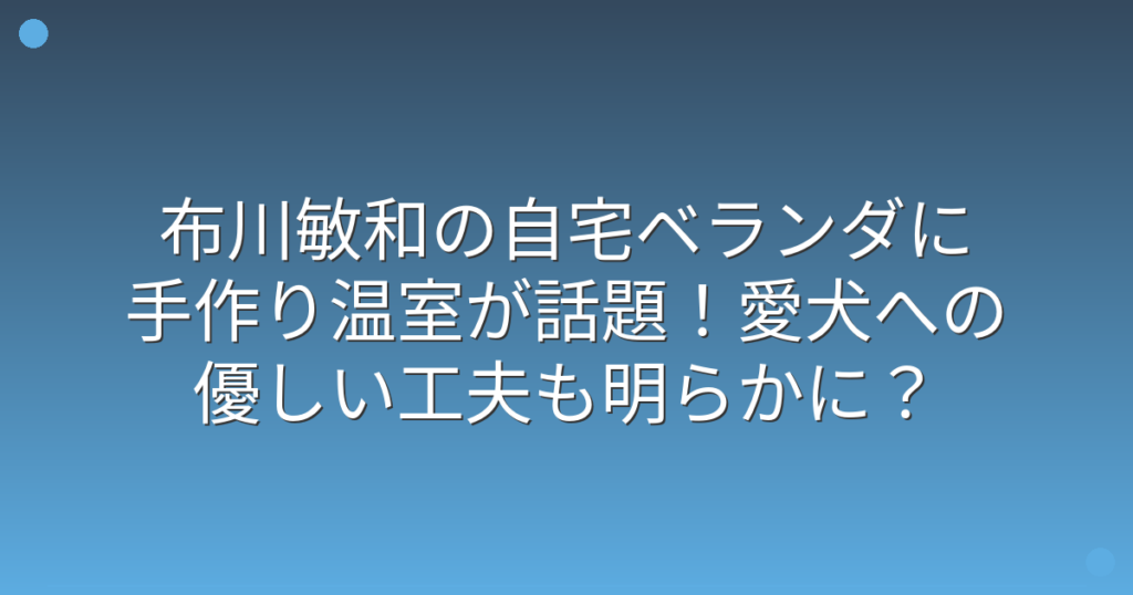 布川敏和の自宅ベランダに手作り温室が話題!愛犬への優しい工夫も明らかに?