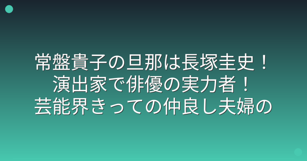 最近、常盤貴子さんの和服姿がSNSで話題になり、その美しさに注目が集まっています。 そんな常盤貴子さんの旦那様についても、多くの方が興味を持たれているようですね。 そこで今回は、常盤貴子さんの旦那様である長塚圭史さんについて、詳しく見ていきま...