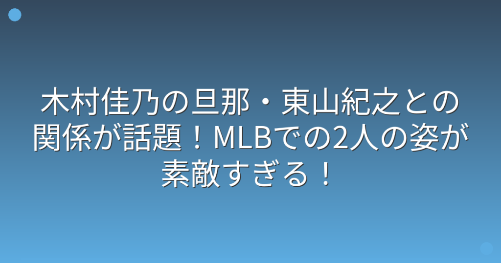 最近、木村佳乃さんと旦那様の東山紀之さんが、大谷翔平選手のMLB試合を観戦する姿が話題になっていますね。 芸能界きっての仲の良い夫婦として知られる2人ですが、最近はメディアでの露出も増えており、注目を集めています。 そこで今回は、木村佳乃さん... -