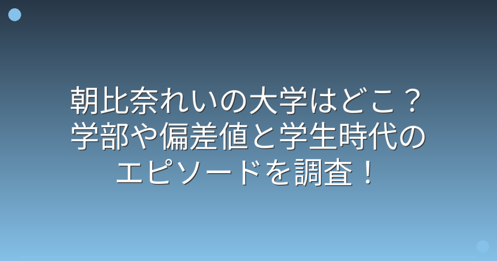 朝比奈れいの大学はどこ?学部や偏差値と学生時代のエピソードを調査!