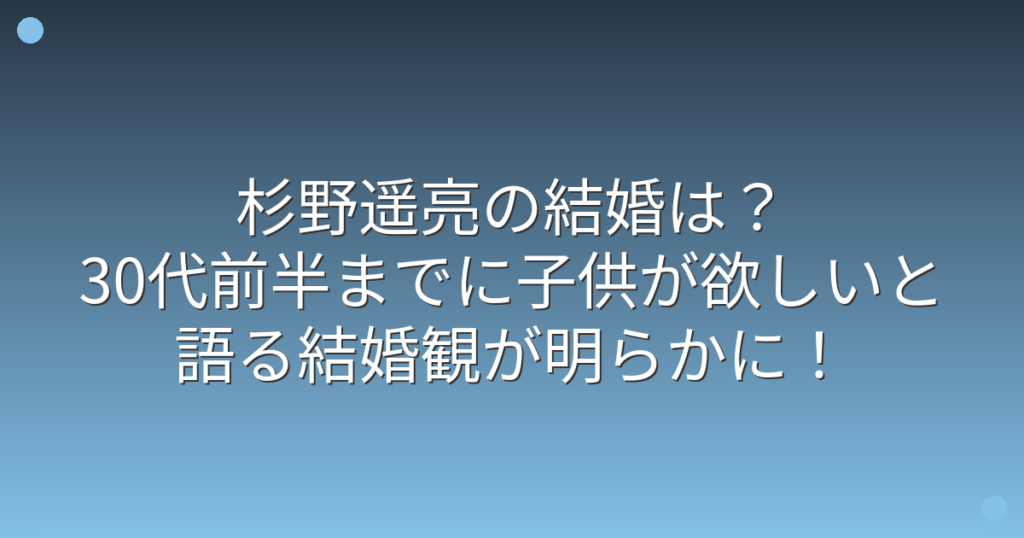杉野遥亮の結婚は?30代前半までに子供が欲しいと語る結婚観が明らかに!