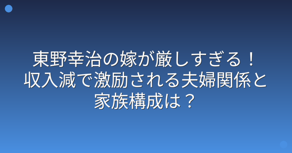 東野幸治の嫁が厳しすぎる!収入減で激励される夫婦関係と家族構成は?