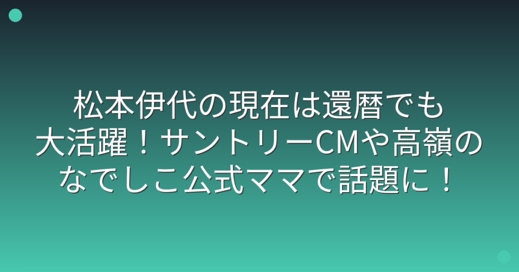 松本伊代の現在は還暦でも大活躍!サントリーCMや高嶺のなでしこ公式ママで話題に!