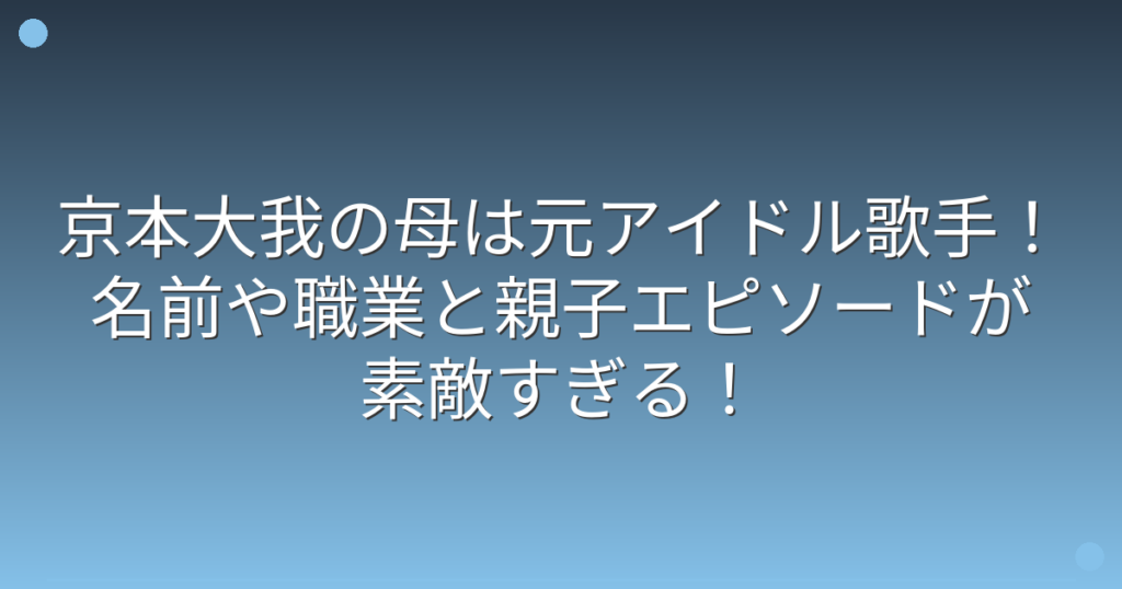 SixTONESのメンバーとして活躍する京本大我さんですが、そのお母様についても注目が集まっていますね。 実は京本大我さんの母親も芸能界で活躍していた方だということをご存知でしょうか。 そこで今回は、京本大我さんの母親の名前や職業、素敵な親子エピ...