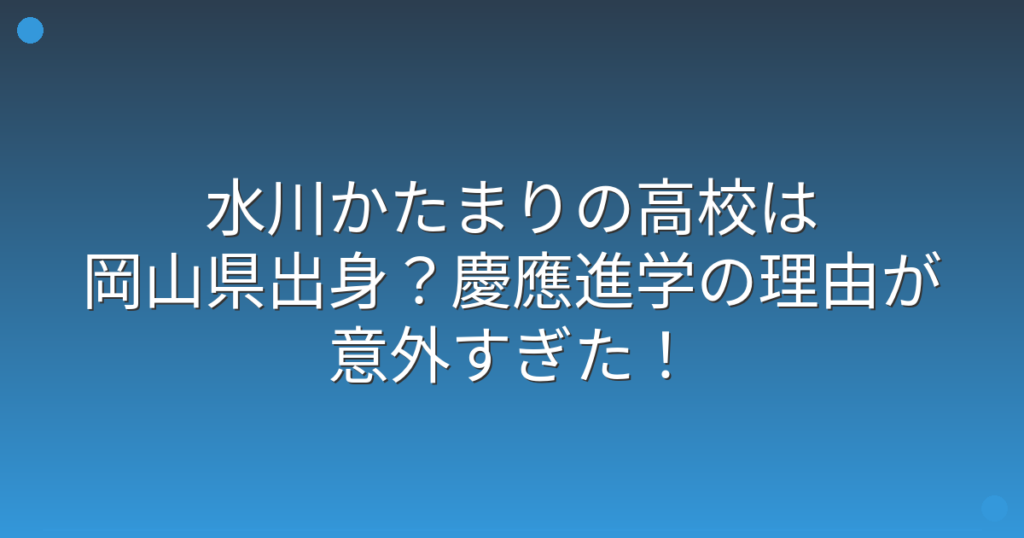 水川かたまりの高校は岡山県出身?慶應進学の理由が意外すぎた!