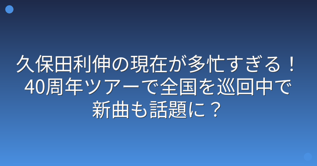 日本のR&Bシーンを牽引してきた久保田利伸さんが、デビュー40周年を迎えて大きな話題となっていますね。 現在の活動状況や最新の音楽活動について、気になっている方も多いのではないでしょうか。 そこで今回は、久保田利伸さんの現在の活動状況や最新のラ...