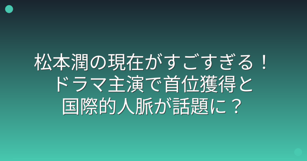 松本潤の現在がすごすぎる!ドラマ主演で首位獲得と国際的人脈が話題に?
