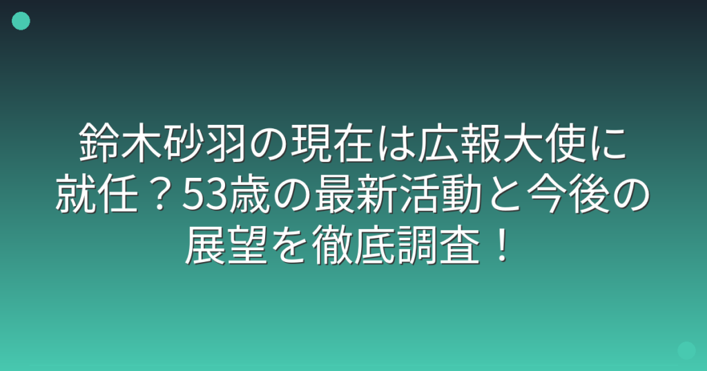 鈴木砂羽の現在は広報大使に就任?53歳の最新活動と今後の展望を徹底調査!