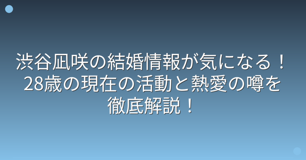 渋谷凪咲の結婚情報が気になる!28歳の現在の活動と熱愛の噂を徹底解説!