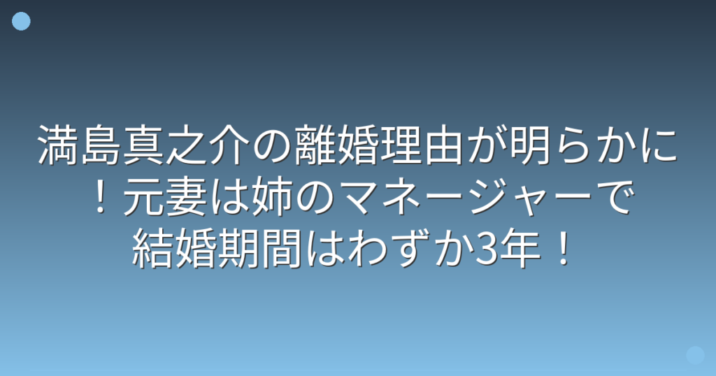 満島真之介の離婚理由が明らかに!元妻は姉のマネージャーで結婚期間はわずか3年!