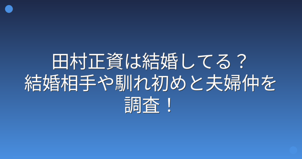 田村正資は結婚してる?結婚相手や馴れ初めと夫婦仲を調査!