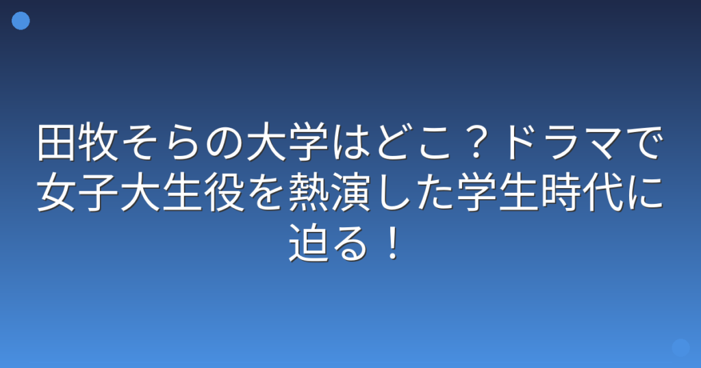 田牧そらの大学はどこ?ドラマで女子大生役を熱演した学生時代に迫る!