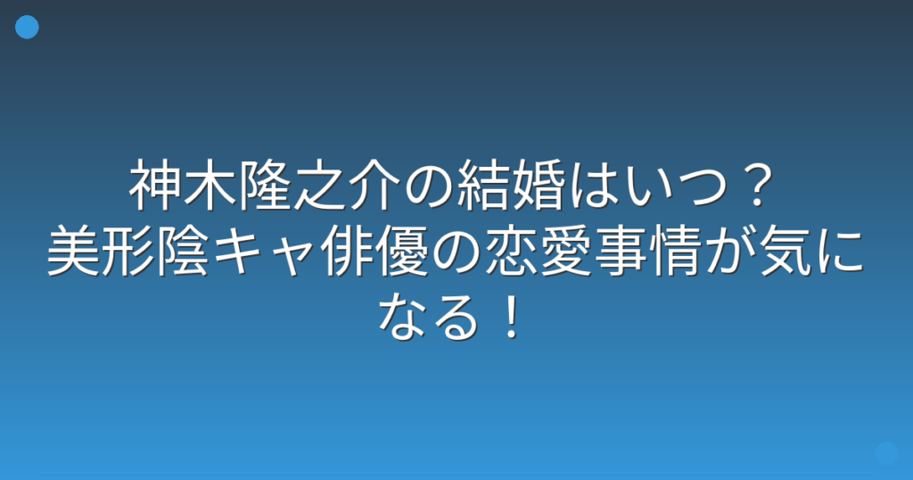 最近、俳優の神木隆之介さんの結婚について、ファンの間で大きな注目を集めています。 「結婚するなら隆ちゃんがいい」と言われるほど、多くの女性から支持されている神木隆之介さんですが、現在の結婚や恋愛事情が気になるところです。 そこで今回は、神...