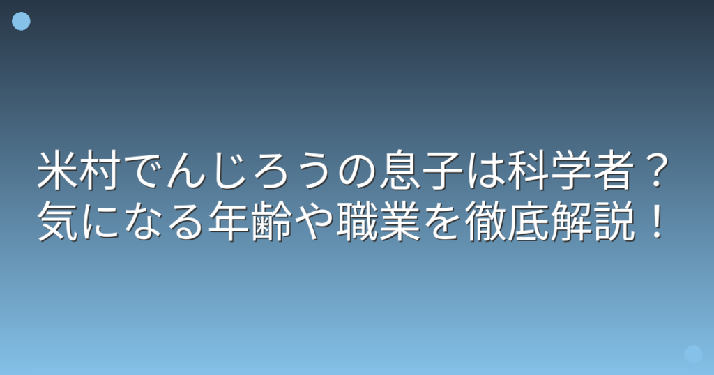 科学実験の第一人者として知られる米村でんじろうさんは、その独特なキャラクターと面白い実験で多くの人々を魅了しています。 そんな米村でんじろうさんの息子について、最近ネット上で話題になっているようです。 今回は、米村でんじろうさんの息子につ...