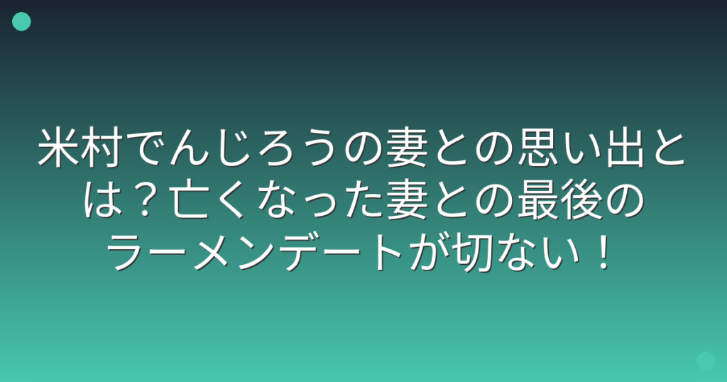 米村でんじろうの妻との思い出とは?亡くなった妻との最後のラーメンデートが切ない!