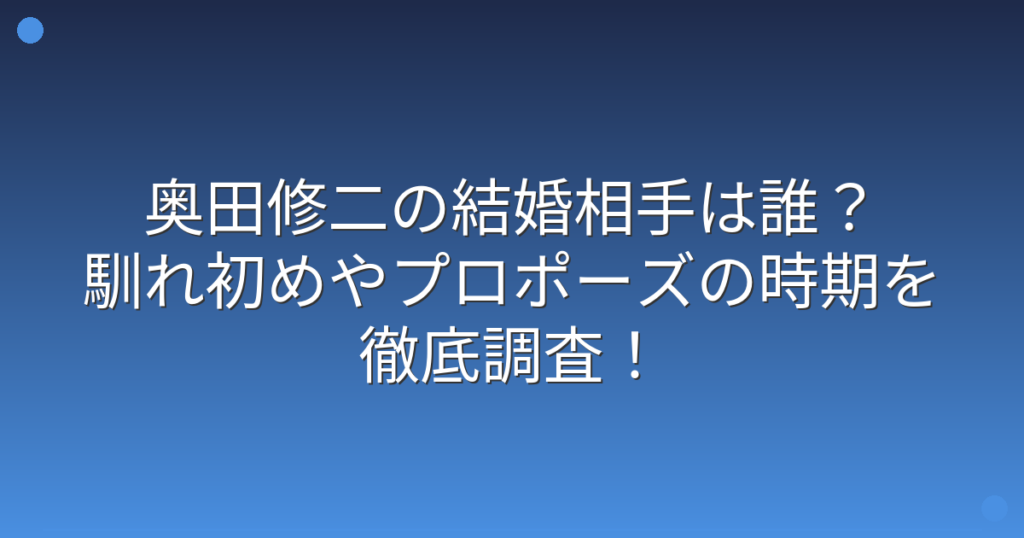 奥田修二の結婚相手は誰?馴れ初めやプロポーズの時期を徹底調査!