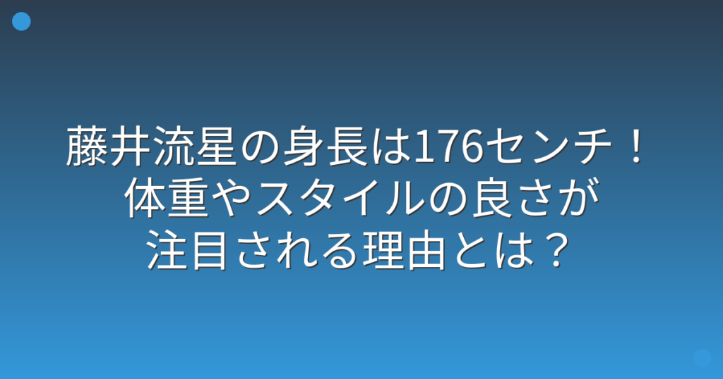 藤井流星の身長は176センチ!体重やスタイルの良さが注目される理由とは?