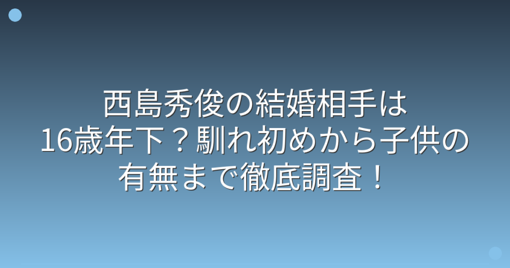 西島秀俊の結婚相手は16歳年下?馴れ初めから子供の有無まで徹底調査!