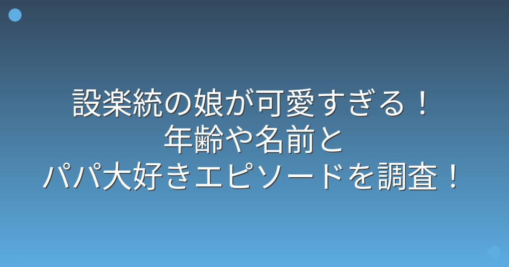 設楽統の娘が可愛すぎる!年齢や名前とパパ大好きエピソードを調査!