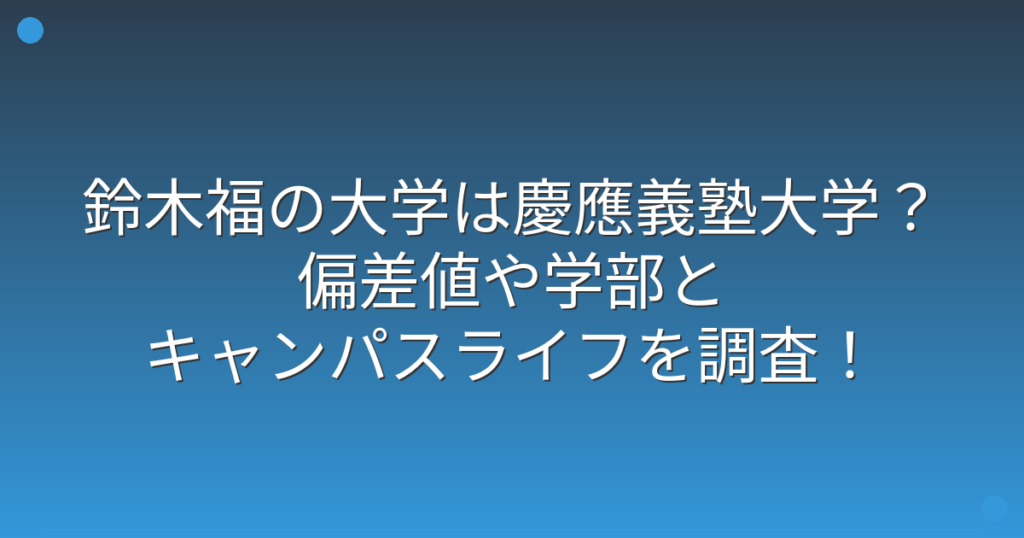 鈴木福の大学は慶應義塾大学?偏差値や学部とキャンパスライフを調査!