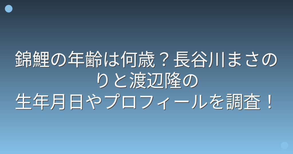 錦鯉の年齢は何歳?長谷川まさのりと渡辺隆の生年月日やプロフィールを調査!